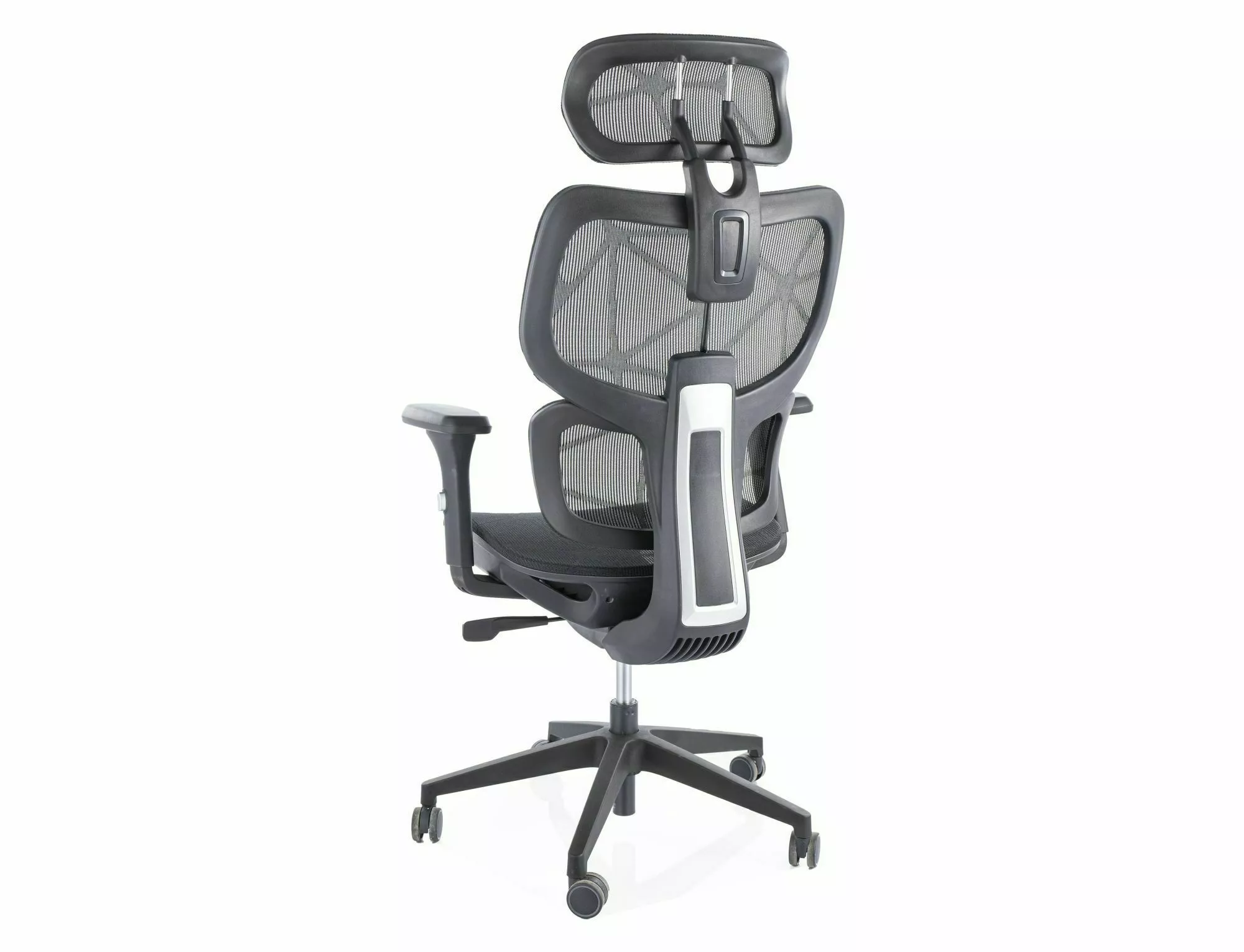 Fotel obrotowy, tapicerka: siatka, stelaż: tworzywo, kolor: czarny / czarny. Multiblock, regulowane: podłokietniki 4D, zagłówek, odcinek lędźwiowy.