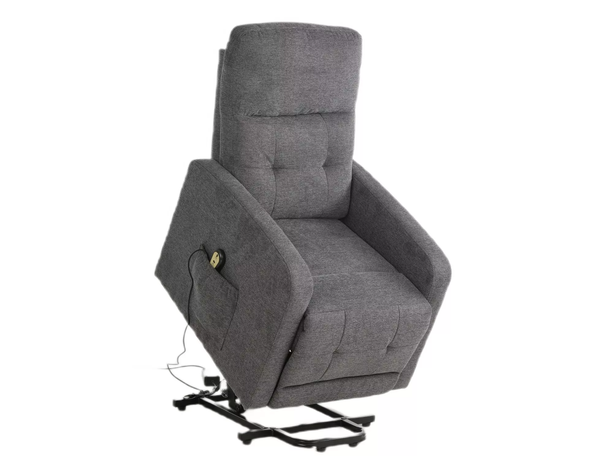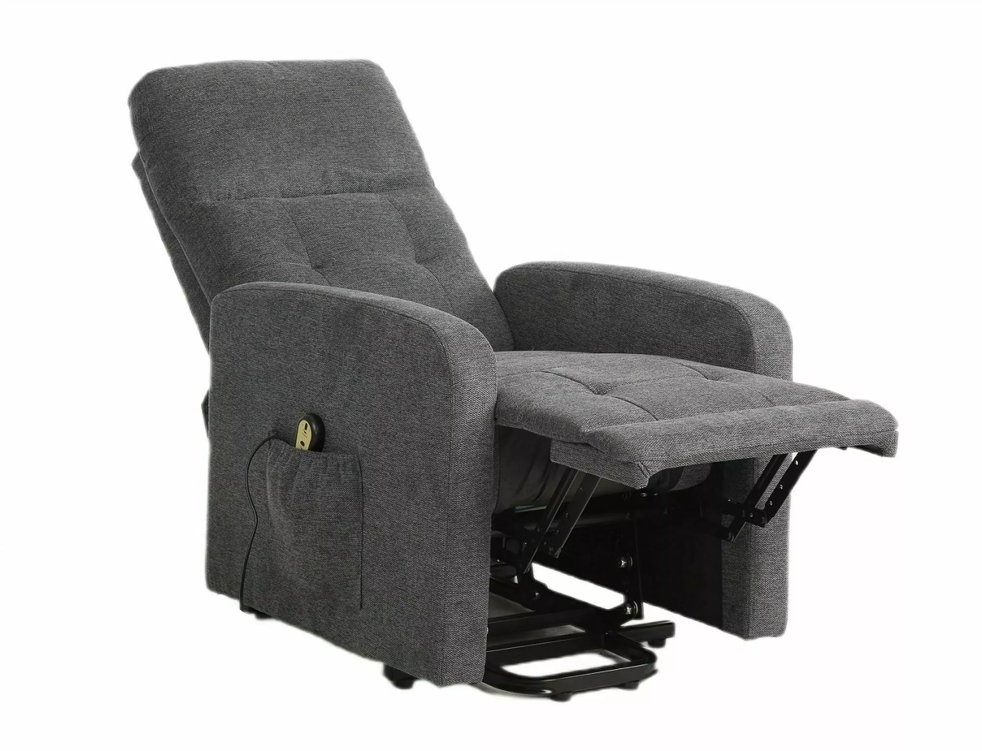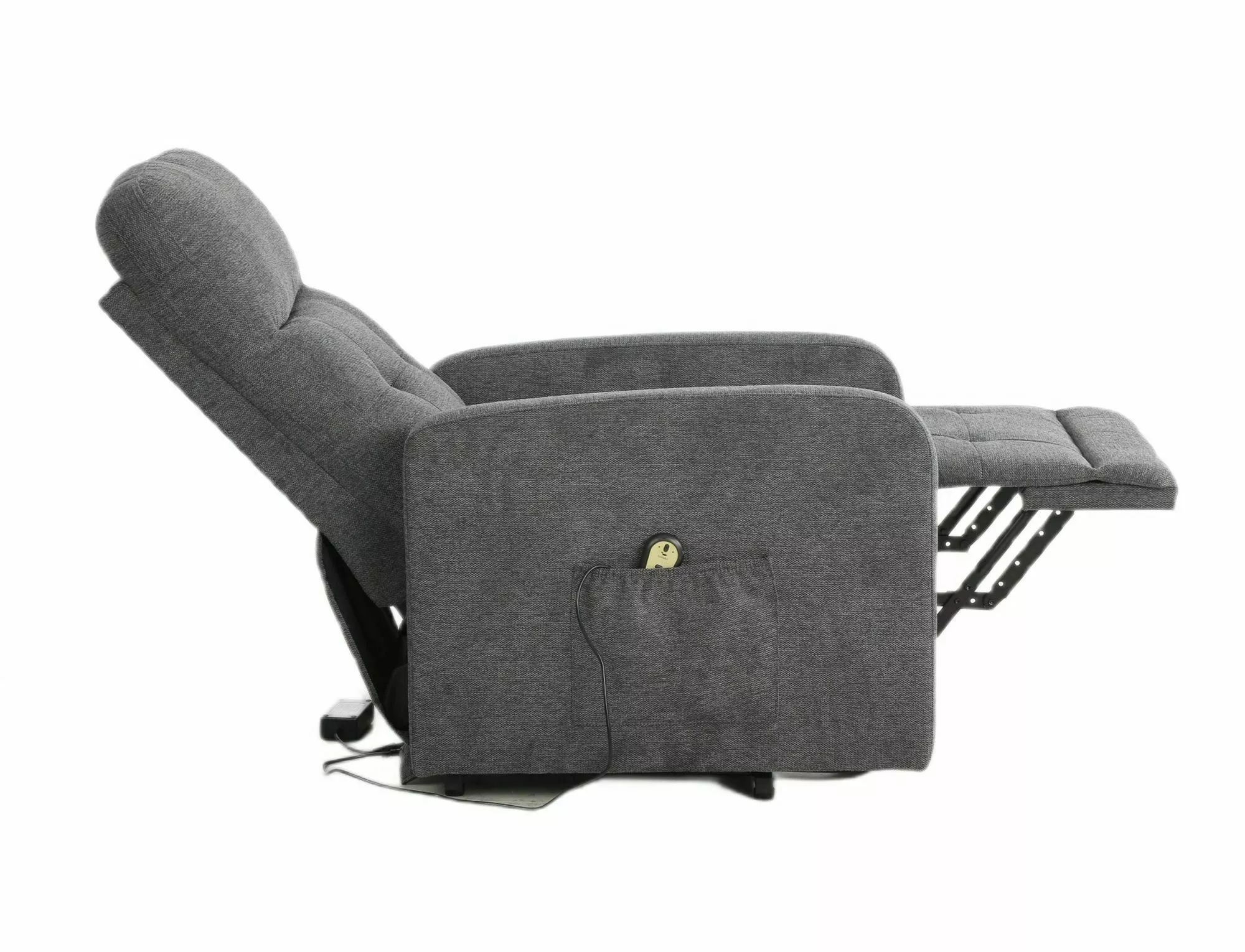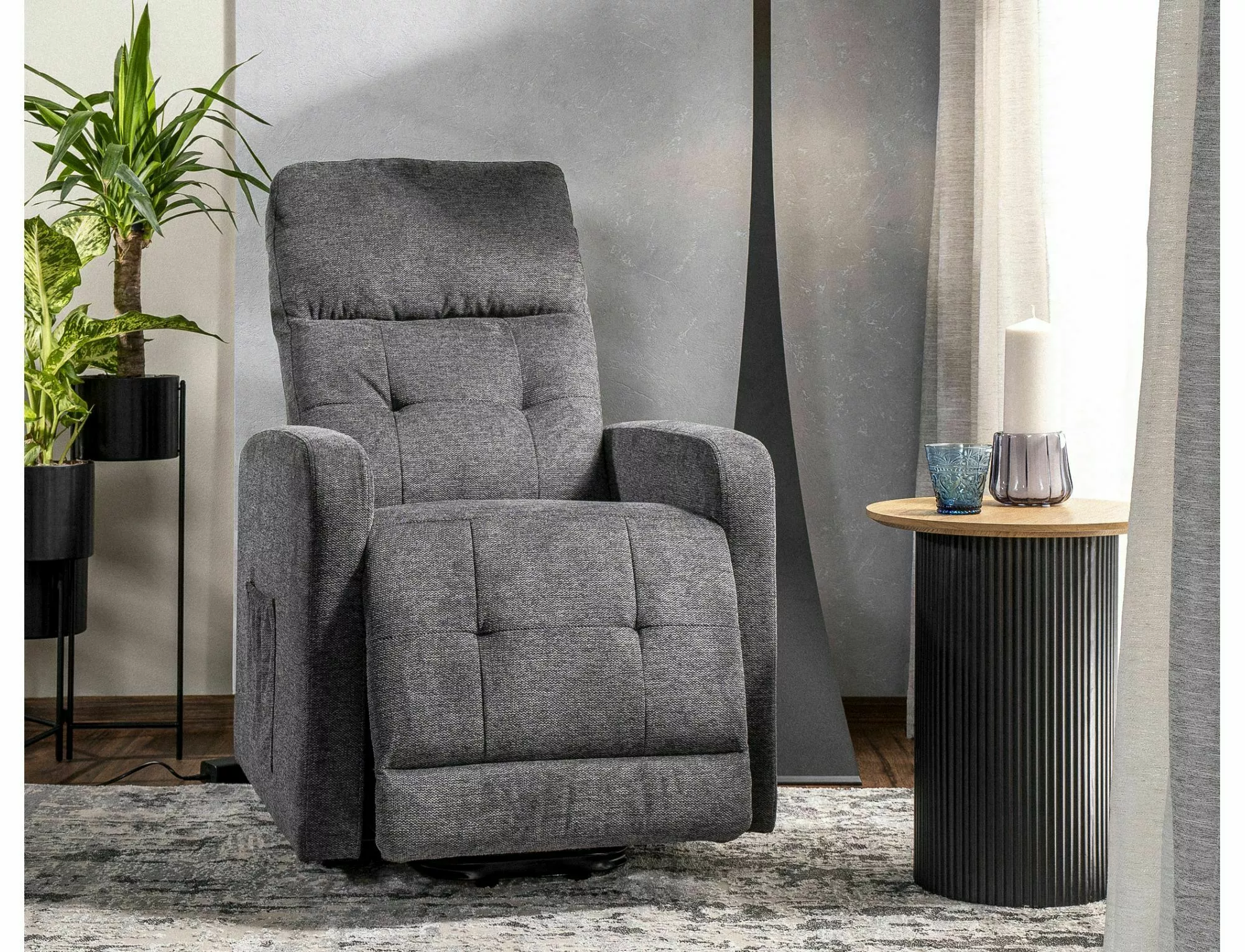 Fotel rozkładany, tapicerka: tkanina Brego, stelaż: metal, kolor: 18 ciemny szary / czarny. Rozkładanie elektryczne, funkcja: pionizacji.