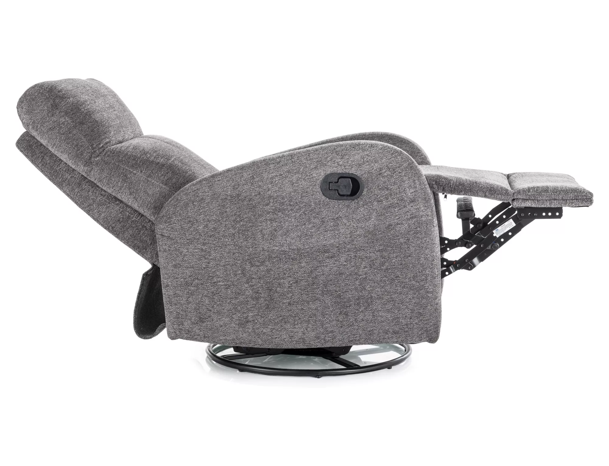 Fotel rozkładany z funkcją kołyski, tkanina Raven, 15 stelaż: metal, kolor: szary / czarny. Siedzisko obracane w zakresie 360st., opcja kołyski działa w pozycji złożonej.