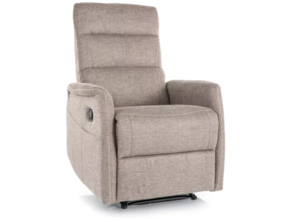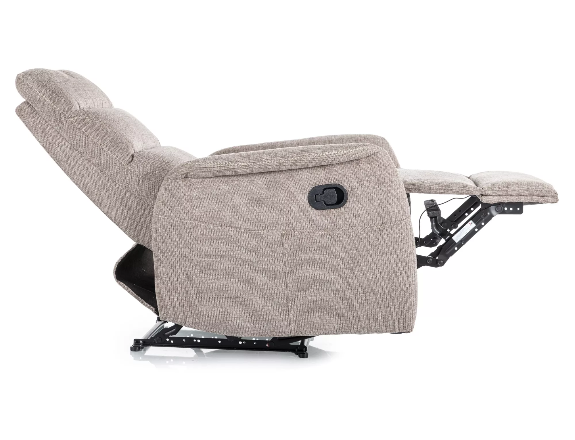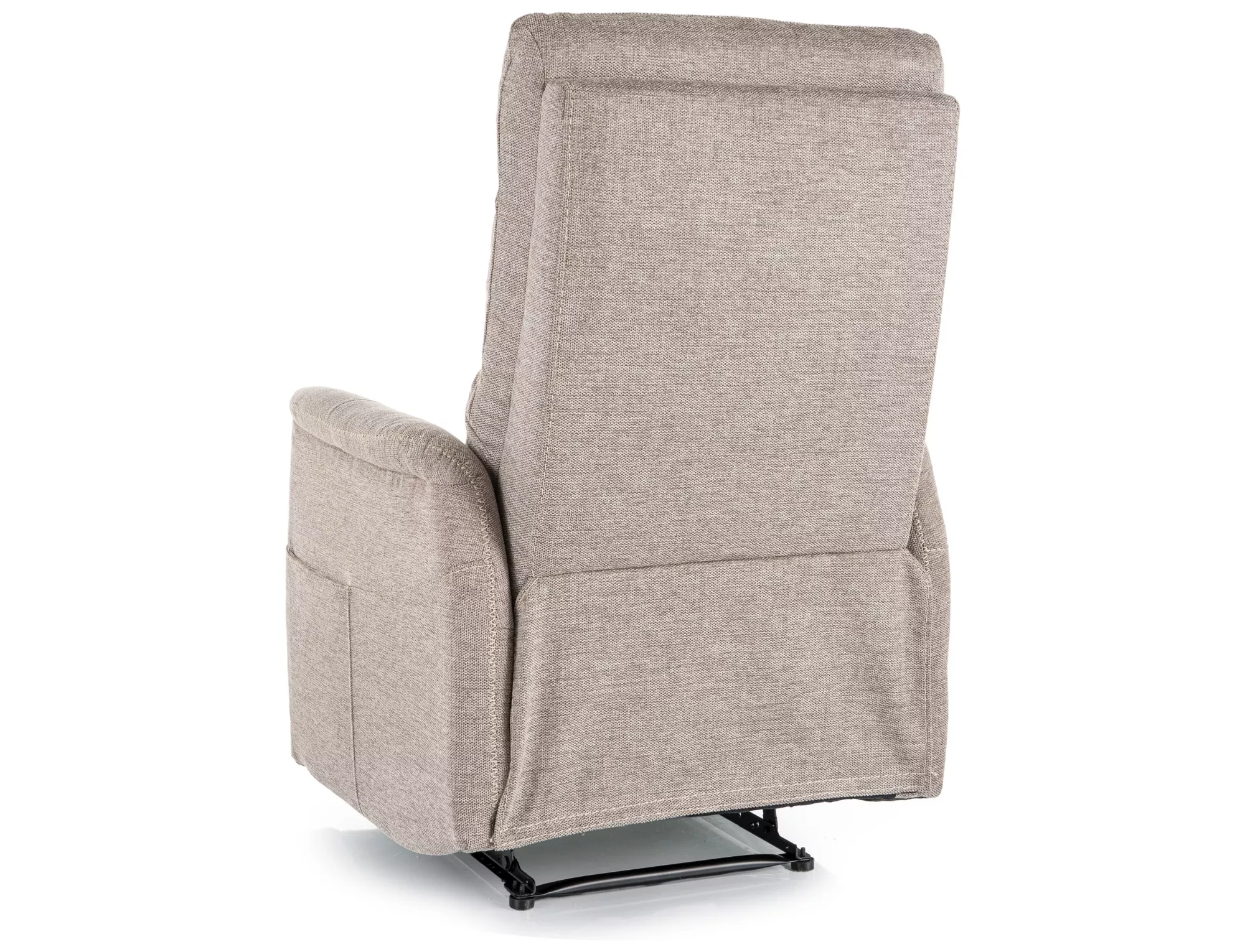 Fotel rozkładany z funkcją masażu, tkanina Brego 34, stelaż: metal, kolor: beżowy / czarny. Praktyczna kieszeń na prawym boku, przewodowy pilot sterujący funkcą masażu.