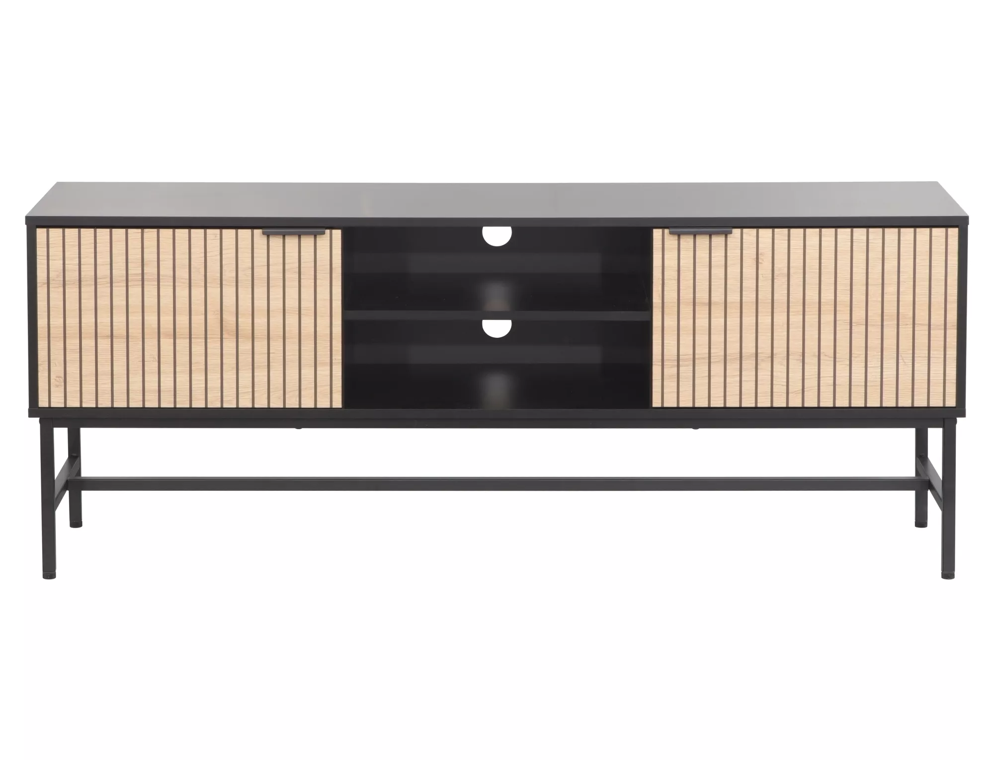 Szafka RTV, blat: płyta laminowana, stelaż: metal, kolor: dąb + czarnt mat / czarny.