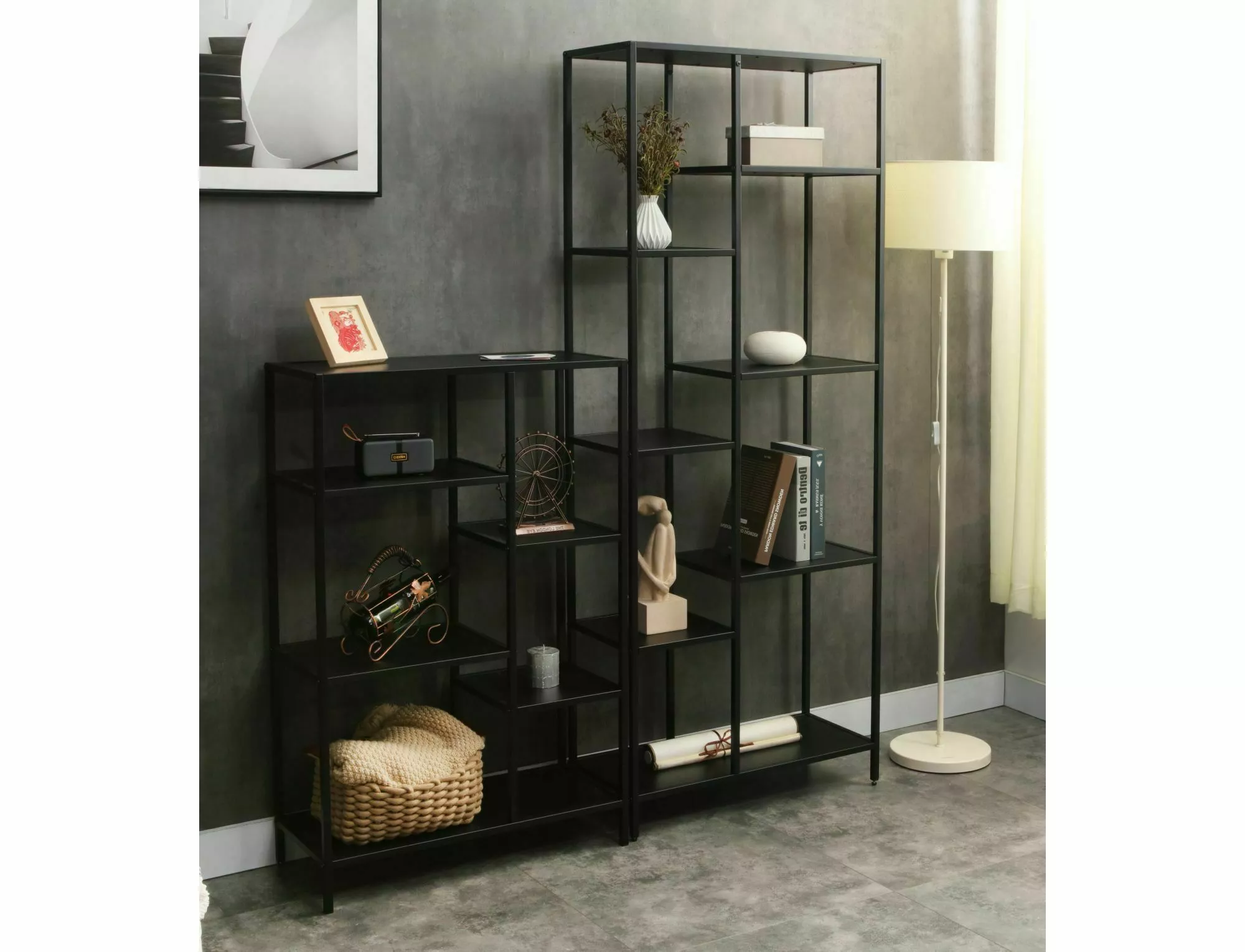 Regał, półki: płyta laminowana, stelaż: metal, kolor: czarny / czarny mat.
