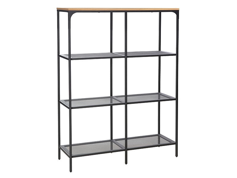 Regał, półki: płyta laminowana + metal, stelaż: metal, kolor: czarny / dąb / czarny mat.