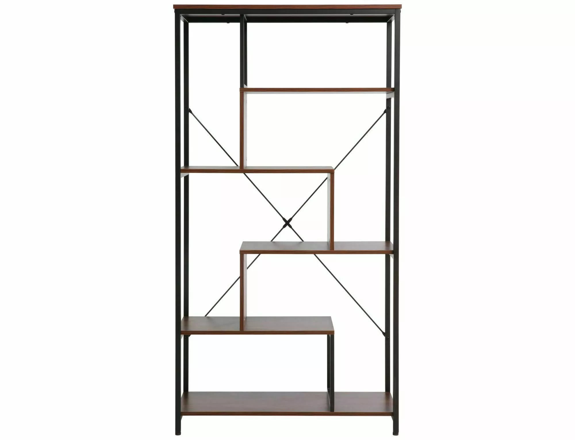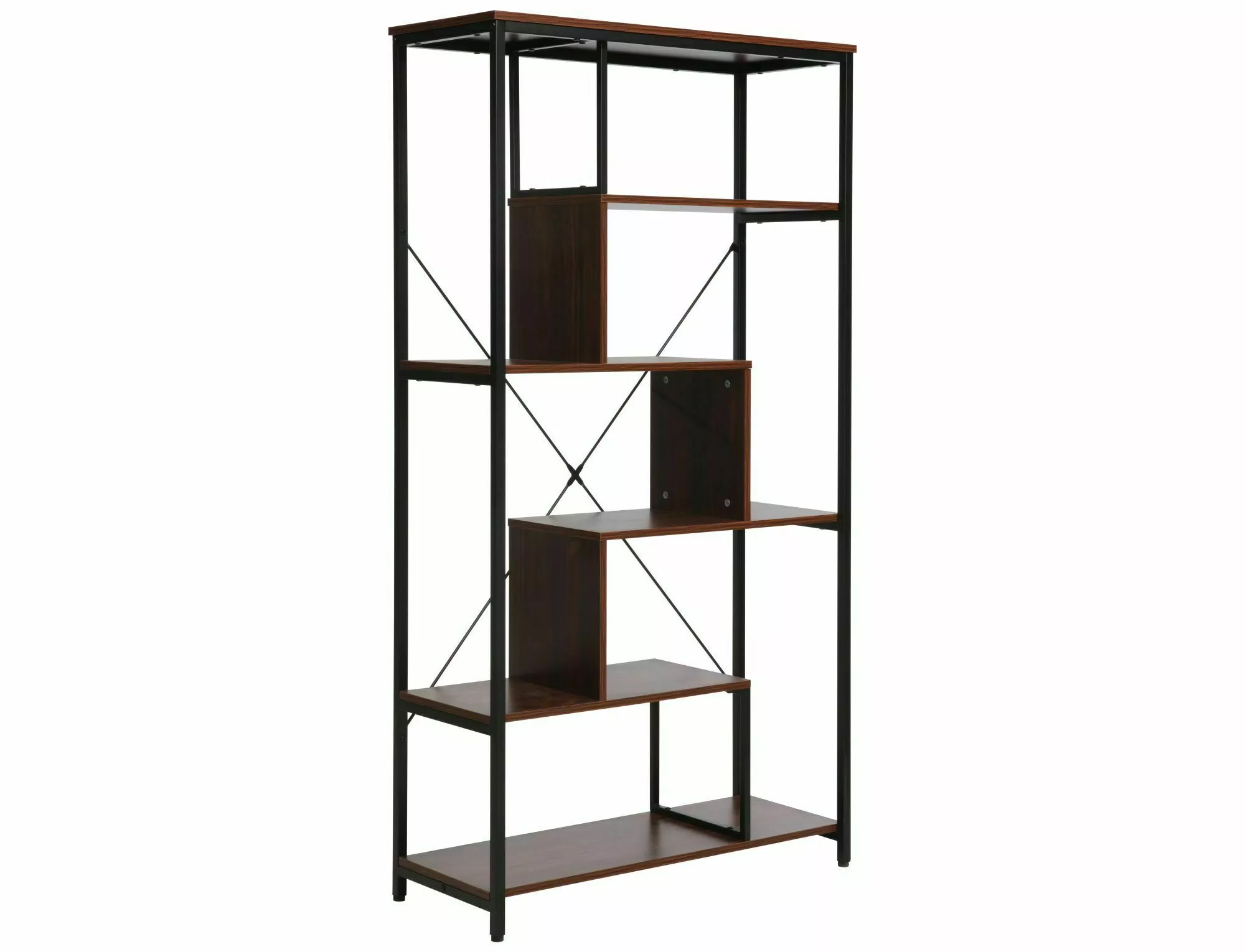 Regał, półki: płyta laminowana, stelaż: metal, kolor: ciemny orzech / czarny mat.